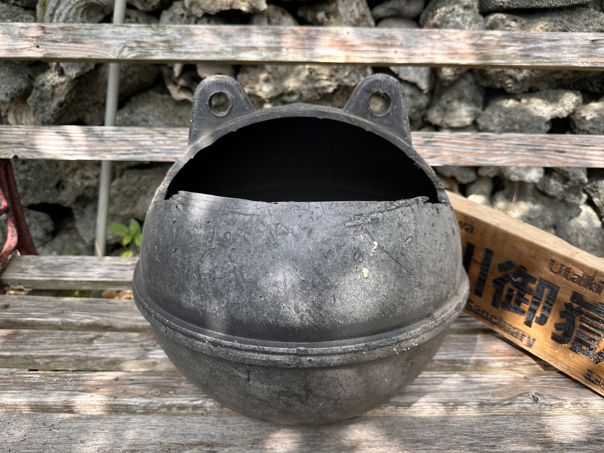 看板に使った木材は流木や廃材を使い、